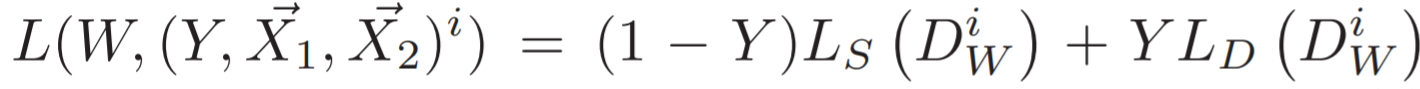 위식은 class 가 같은경우 Y=0 이어야 Ls를 줄이는 방향으로, 다를경우, Y=1이어야 Ld를 줄이는 방식으로 작동되게 되어 있습니다. 일반적으로 같은경우 Y=1, 틀린경우 Y=0을 택할것 같은데 다르게 되어있네요...