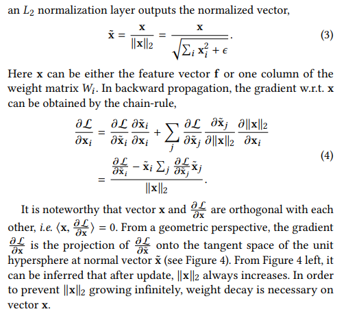 기존에 test 에만 적용되던 L2 Normalization을 training에도 적용시킴. normalization이 필요한 이유를 수치적으로, geolmetric관점 둘다 직관적으로 설명하였으며, 두가지 Loss function을 제안.