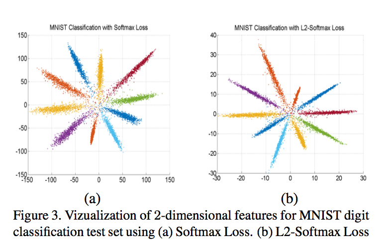 즉 soft max에서 확률값을 구하고 가장 높은 클래스를 뽑게되는데, 이때 feature의 크기에 따라 확률값이 달라지게된다. 따라서 softmax로 학습하게 되면 잘 구분되는 feature들은 큰 magnitude를 갖게 되는데 사실상 figure 2 에서 보듯이 어차피 'radial' 로 클래스를 분리하므로 이런 성질이 필요 없게된다. 원작자는 이런 현상을 없애기 위해 feature normalization을 제안한다.