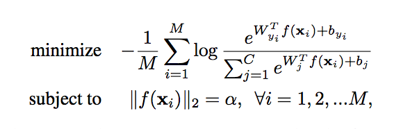 위식을 보면 기본 softmax에 feature의 L2-norm을 alpha로 제한하는 'subject to' 부분 (constraint)만 생성됐다.