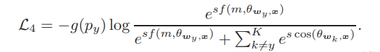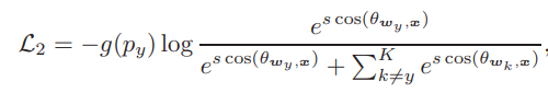 Py, probability는 softmax layer를 지난 output을 의미하며, g function을 통해서 sample mining효과 구현.