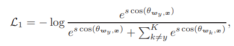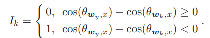 cos(wk,x)=정답이 아닌 클래스와의 각도. ( when k!=y).