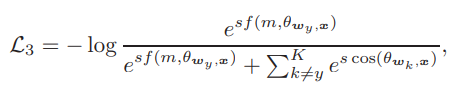 지금까지 위에서 설명한 SV-Softmax에 margin function, f를 추가한 Loss.