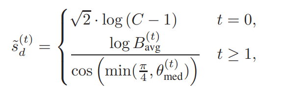 위 2)에서 말했듯이 B를 구하는데 s(t-1)이 사용되므로 initial s, s(0)의 값이 필요한데 이값으로 전 단락에서 구한 fixed scale parameter를 사용하고, 조금더 supvervision을 높이기 위해 theta(t)의 median값을 pi/4가 넘지 않도록 한다. 정리하면 다음식과 같다.