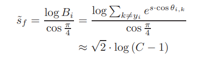 fixed를 구할때 B=C-1 (negative class들의 weight과 feature사이의 theta를 pi/2로 근사)를 가정하였고, True class의 theta들도 학습에 따라 달라지는것을 신경쓰지 않았다.