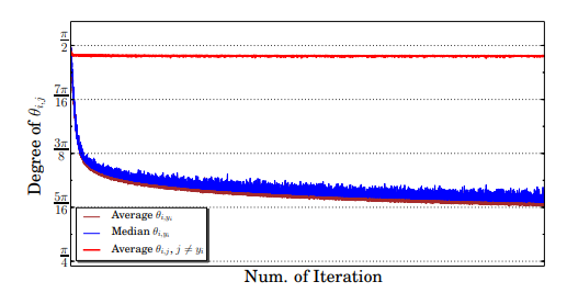 1) 위 식에서 theta0는 gradient가 최대가 되는 지점으로, 학습때마다 줄어드는 theta의 값에 맞춰서 계속 supervision을 주게 하기 위해, t번째 iteration일때, true class theta의 batch 내 median 값을 사용.
