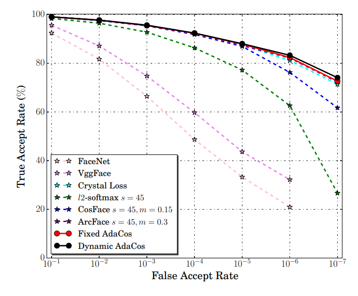IJB-C결과에서 보이듯이 FAR이 낮을때 좋은 결과를 보여준다.