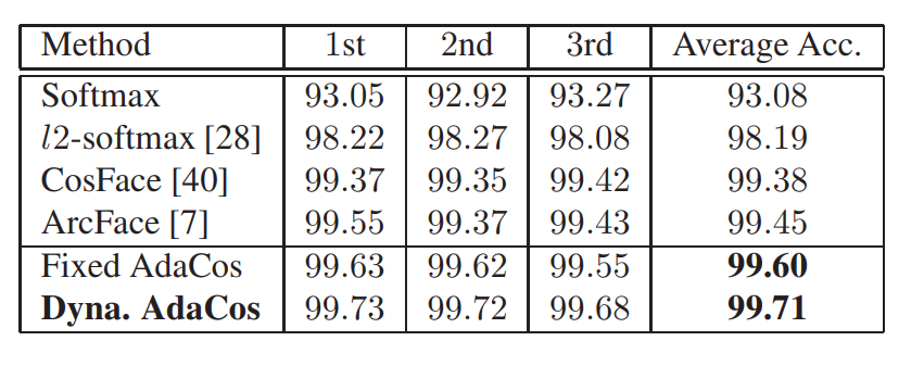Cosine-based softmax loss with Adaptive scaling, AdaCos
